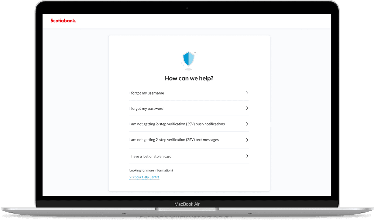 2-step verification (2SV) adds an extra layer of security by requiring customers to confirm their identity when they sign into their bank account or Scotiabank app.
